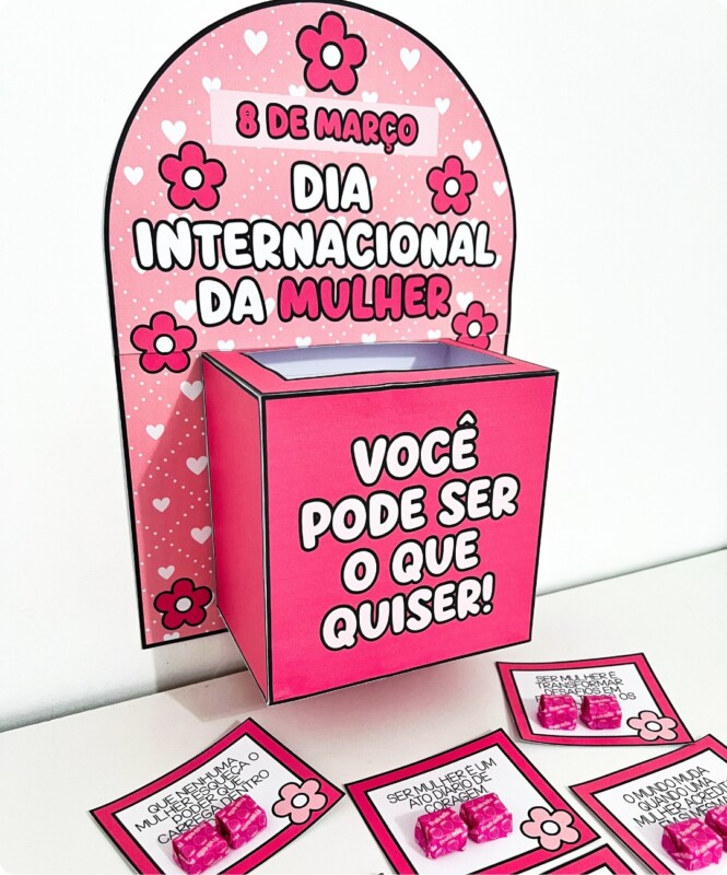 Cada ficha possui espaço para acrescentar um doce, tornando o momento ainda mais significativo e personalizado. Ideal para homenagear e espalhar incentivo de forma simples e encantadora no dia internacional da mulher.
