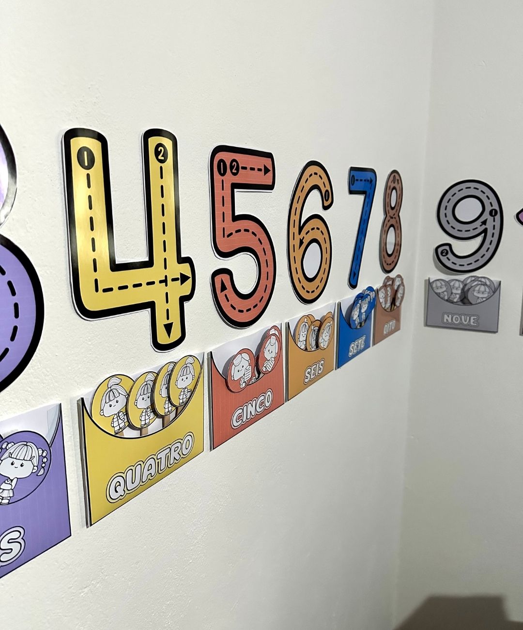 Você também pode deixar esse recurso em um espaço de altura acessível para as crianças, assim elas podem utilizar os numerais para treinar os traçados.